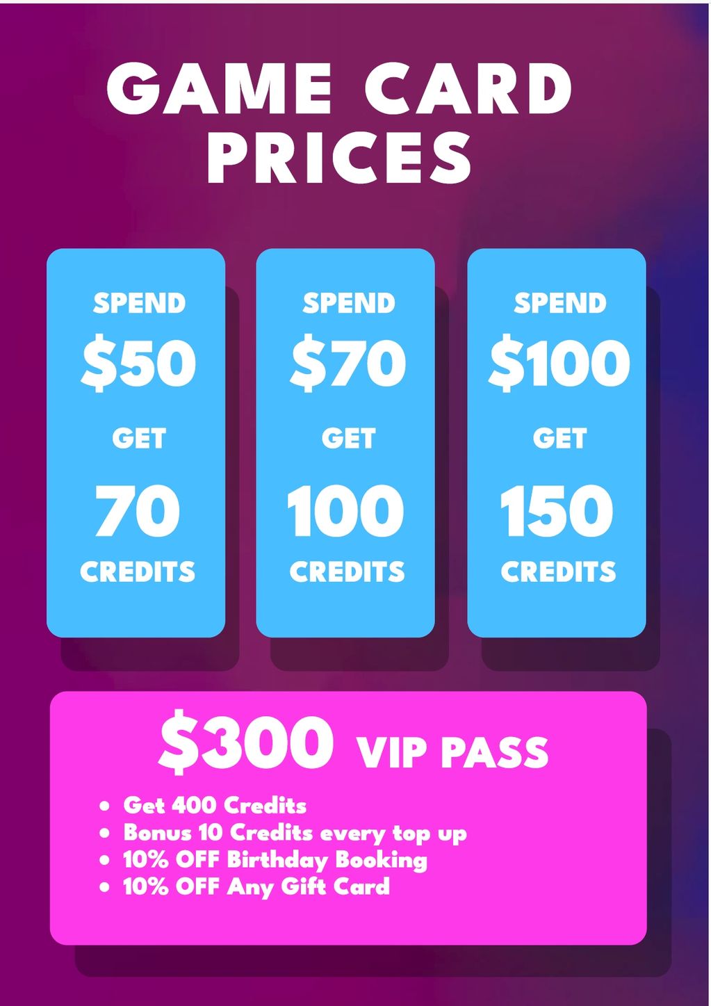 GAME CREDITS NEVER EXPIRE "